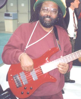 It is late Saturday night and I am pretty well NAMM worn (I played Fri. & Sat after the show) so I will close now but not without mentioning Victor Wooten's stellar performance at the EMG booth. This man must have two brains when it comes to his thought processes regarding bass playing! He played melody, chords & bass simultaniously all on a 4 string bass (I can't imagine what he does with his 7 string Conklin). There was a traffic stopping crowd (naturally) so my view was limited. Victor played standards and his own stuff all with such talent that I was floored. There should be a law that states... Any bass Victor Wooten plays should be called a "precision bass".