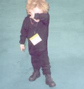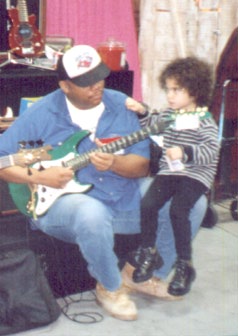 2/1/98 - On the last day of the show there were several surprises. Louis' son Raymond came to the show and sang the blues. Nothing special until you consider that Ray is 4 years old! He really stole the show. Ray Metoyer is pictured below checking out Guitarist Ray Bailey.