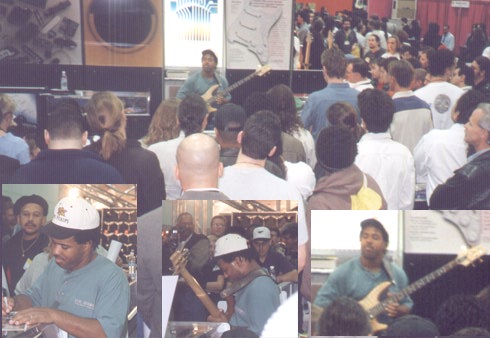 1/29/98 - I did product demonstration at PIGNOSE booth #5267 with Judy Rudin (harmonica) and Louis Metoyer. Louis is the guitarist with Terence Trent D'Arby, and has worked with Patti Scialfa, Belinda Carlisle, 4 Non Blondes, New Edition, Tone Loc, Bobby Brown, The Fan (movie soundtrack) and others. Louis and his group Boot, won the 1997 Southern California Disc Makers independent music world series. He is a good friend and fellow MI graduate (1981).